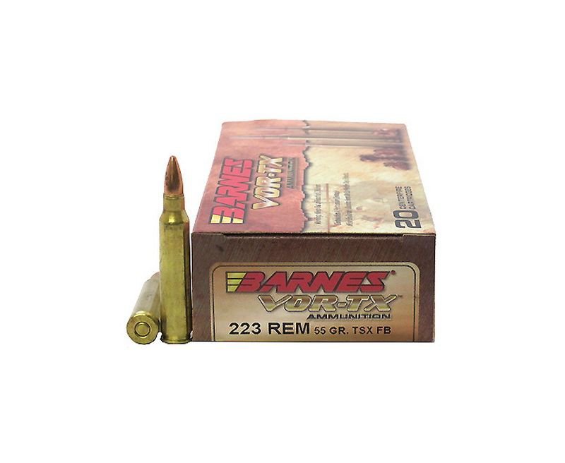 223 Rem 55gr TSX VOR-TX /20 Description Barnes Ammunition – Caliber: 223 Remington – Grain: 55 – Bullet: TSX Flat Base – Muzzle Velocity: 3240 fps – Per 20