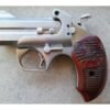 Rowdy is compatible with all standard Bond Arms barrels for easy caliber conversions. The pistol has stainless steel double-barrel and frame, the barrels and trigger are polished and the frame is sand blasted. Features- Automatic spent casting extractor, patented rebounding hammer, retracting firing pins, cross-bolt safety and spring-loaded, cammed locking lever.
