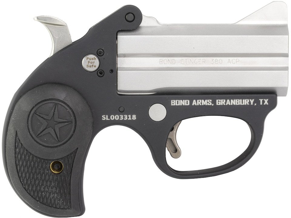 Bond Arms Stinger, All-New Stnger is Here! The Stinger has the same quality as ‘ regular Double Barrel Handguns but has half the weight (12oz) and a slimmer profile (.88″ with thin nylon grips). Originally chambered in 380ACP and 9mm,