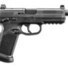 The short recoil 9mm, 4 5/8″ barrel and slide allow for quick second shot resets, allowing the shooter to get back on target faster. The rear sight is a windage and elevation adjustable sight, while the front sight is a dovetail sight. The traditional slim trigger allows for a quick trigger reset while wearing gloves, and the serrated ring hammer provides a positive grip while cocking. External extractor, ambidextrous safety, and magazine disconnect safety are among the enhanced external controls.