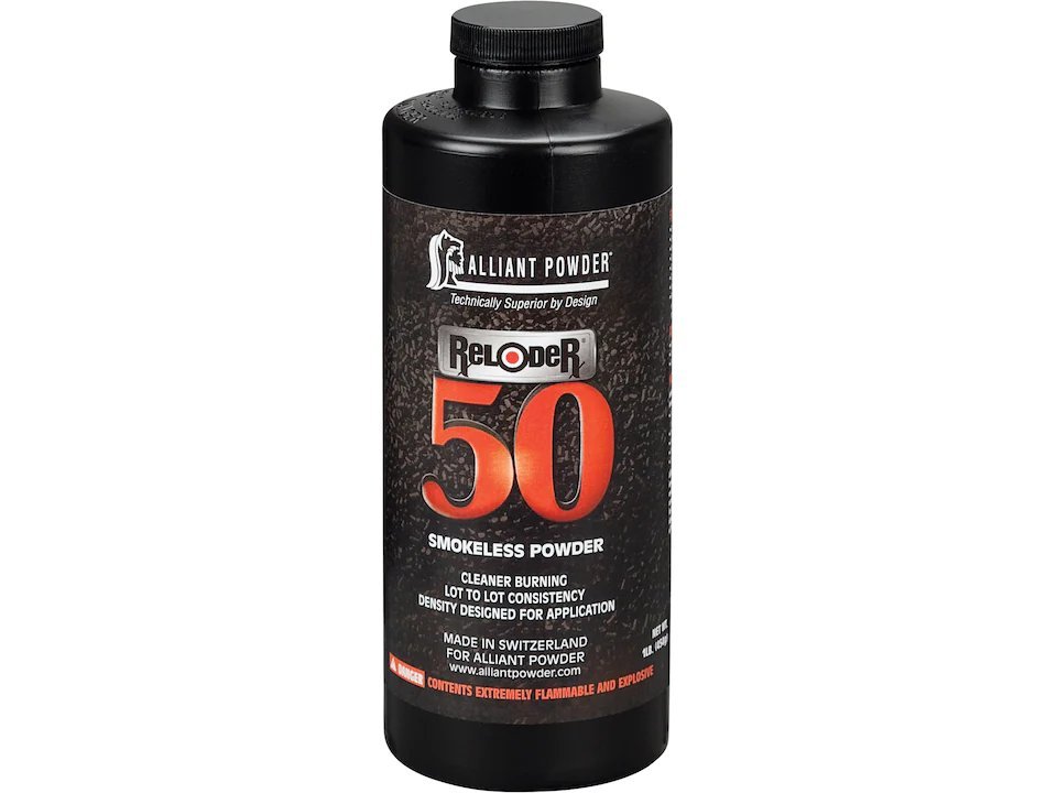 Reloder 50 powder is available in both 1lb and 8lb container.