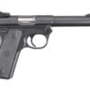 Ruger Mark IV pistols are the latest evolution of Ruger’s original 1949 Standard Auto Pistol. Ruger Mark IV improvements include the use of a solid one-piece fully machined grip frame, a simple take-down mechanism for easy disassembly and cleaning, an improved bolt stop leaver, an ambidextrous manual safety, and a drop-free magazine release. The Ruger Mark IV 22/45 features a bull barrel, fully adjustable target sights and light weight polymer “22/45” grip frame that matches the grip angle of the popular “1911”-style pistol. The Ruger Mark IV 22/45 uses Mark IV 22/45 magazines only. Mark IV 22/45 magazines are not compatible with the Mark III 22/45. The Ruger Mark IV pistol is equipped with a magazine disconnect. This device prevents the trigger from being pulled if the magazine is removed from the pistol.