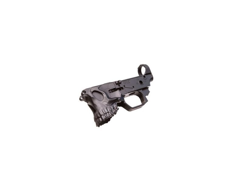 This lower receiver displays the inspired design of a pirate like skull carved and shaped into the magazine well with great detail. Milled from strong 7075-T6 aluminum it has bullet pictogram selector markings on both sides. Multi caliber marked, this lower is ready for your .223/5.56, 6.5 Grendel or .300 AAC Blackout build. It features a heavily flared magwell with an oversized integrated trigger guard and accepts any standard AR15 pattern magazine including GI and PMAGS. Fully compatible with all mil-spec internal parts and aftermarket mil-spec upper receivers, you won’t have any trouble building the ultimate ultra-reliable lower receiver. This amazing looking base platform for your next rifle is finished in an extremely durable mil-spec hardcoat anodized black finish. It’s time to build your next modern sporting rifle. It’s time for you to pickup a Jack Lower from Sharps Bros. me hearty. This lower has all the pirate ship with half the scurvy.